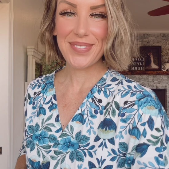 The Blue Skies Wrap Dress combines effortless elegance with flattering versatility. This timeless wrap style cinches at the waist to create a defined silhouette that complements every body type. Three-quarter length sleeves offer the perfect balance of coverage and breathability, while the shin-length hem provides a sophisticated, elongating effect. Designed to fit true to size, this dress transitions seamlessly from office to evening, making it an essential addition to any wardrobe. We recommend purchasing true to your size.