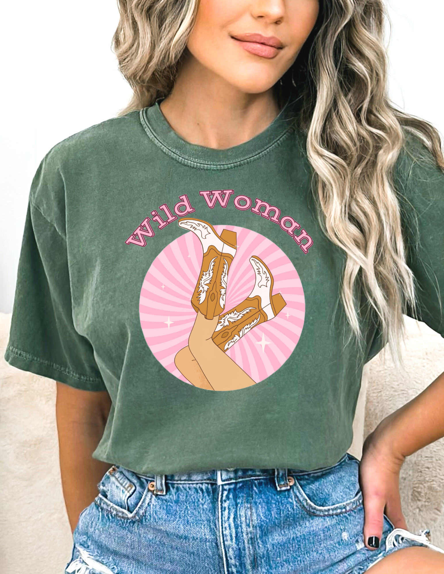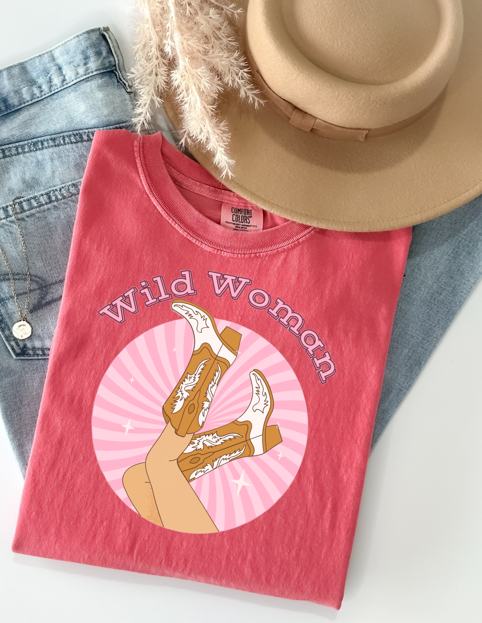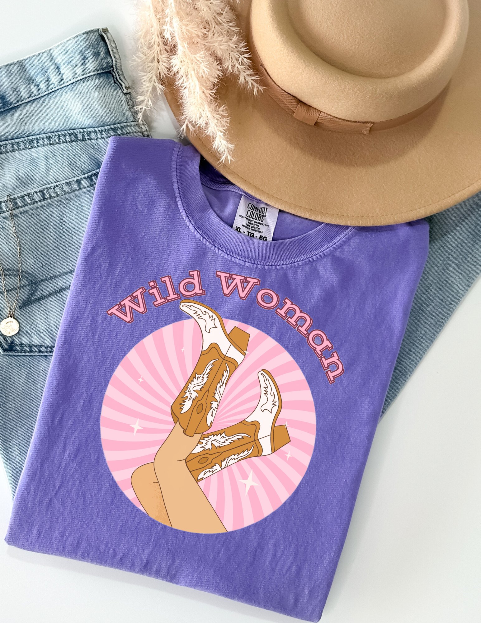Absolutely adorable retro inspired "Wild Woman" tee printed on our favorite retro inspired Comfort Color Tees!