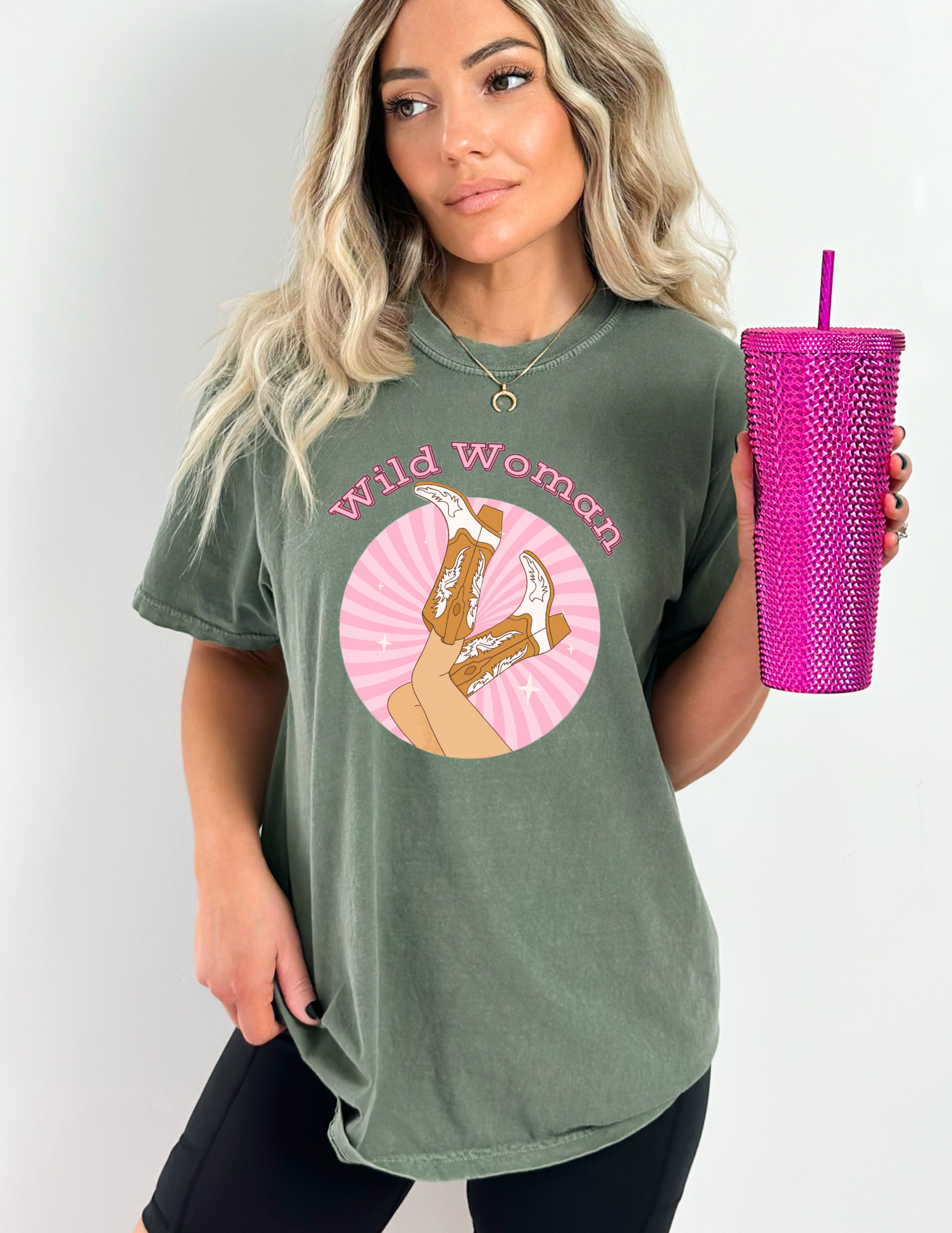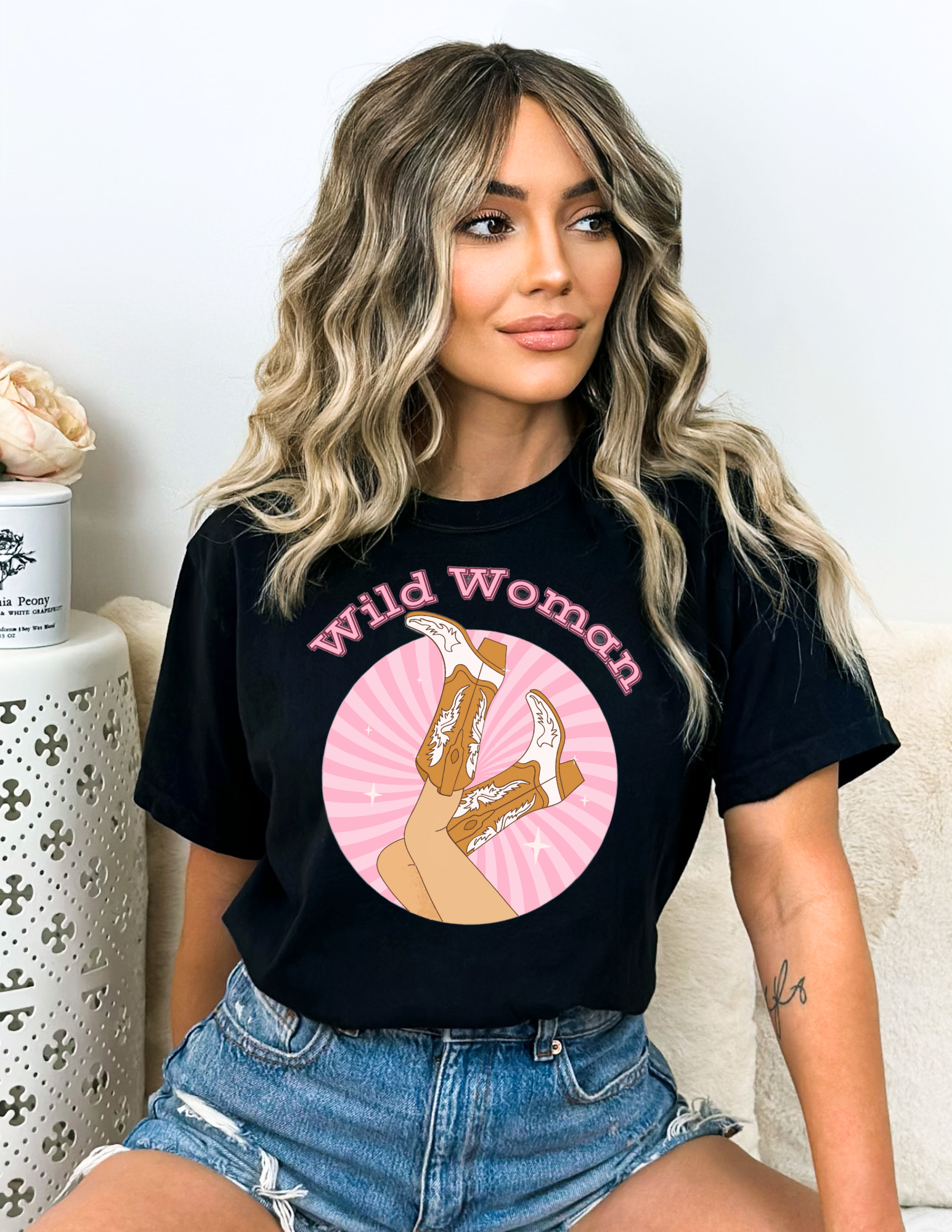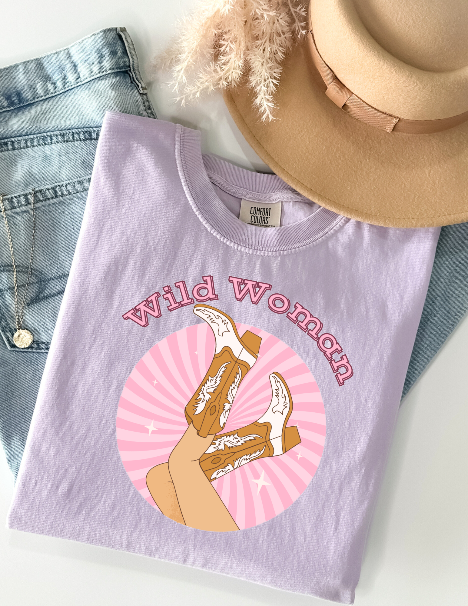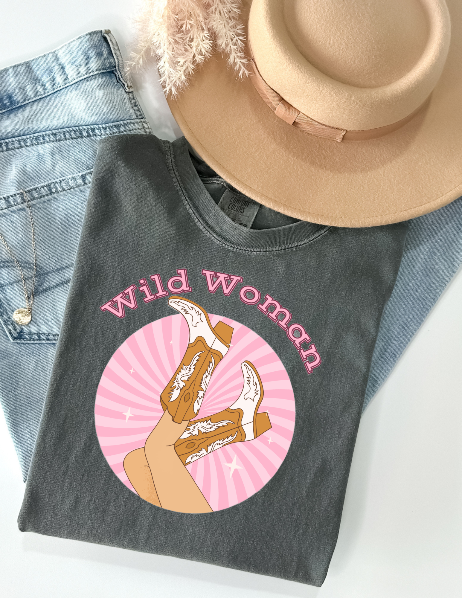 Absolutely adorable retro inspired "Wild Woman" tee printed on our favorite retro inspired Comfort Color Tees!
